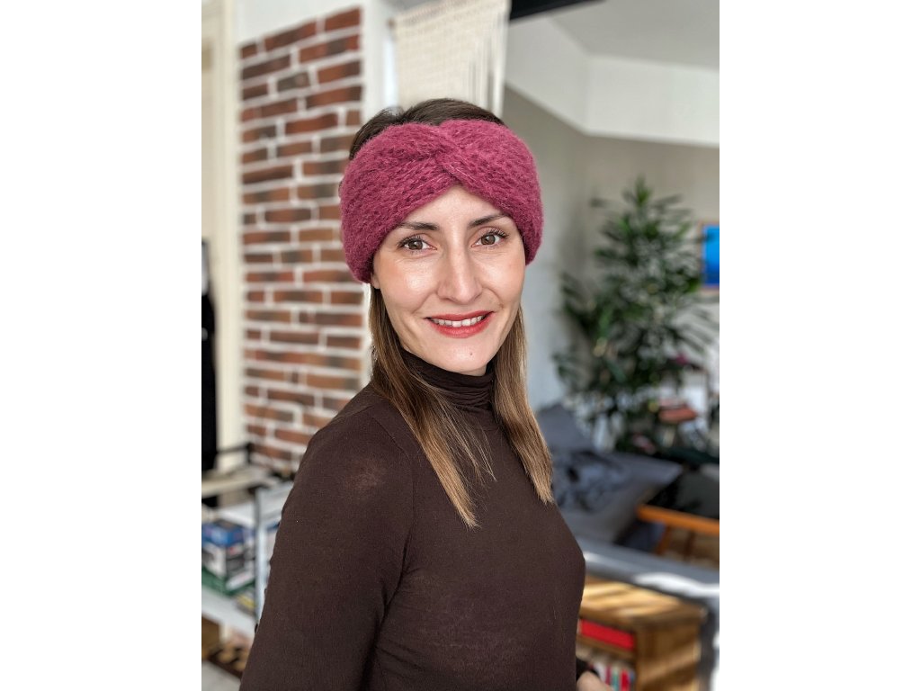 Ručně háčkovaná čelenka. Díky použití jemné směsi alpaky a hedvábí si užijete neuvěřitelný pocit pohodlí a elegance, který vás bude hýčkat každý den.