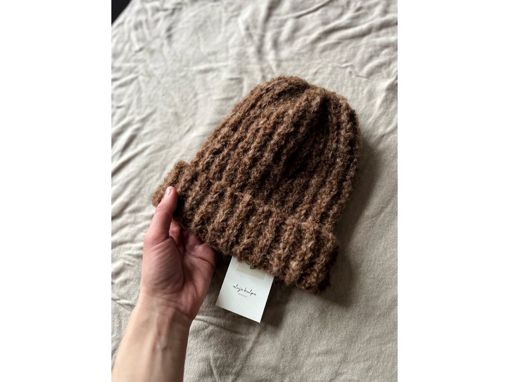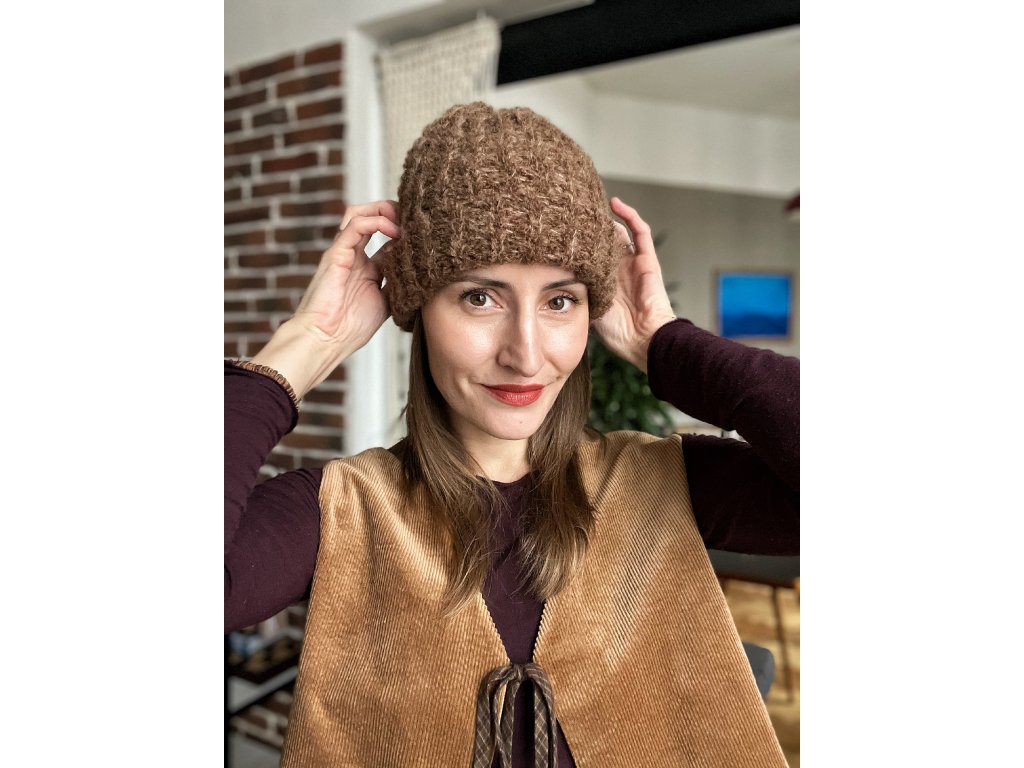 Ručně háčkovaná čepice z luxusní a velmi jemné směsi alpaky a morušového hedvábí. Obejme vás jako teplý oblak, který nebudete chtít sundat.